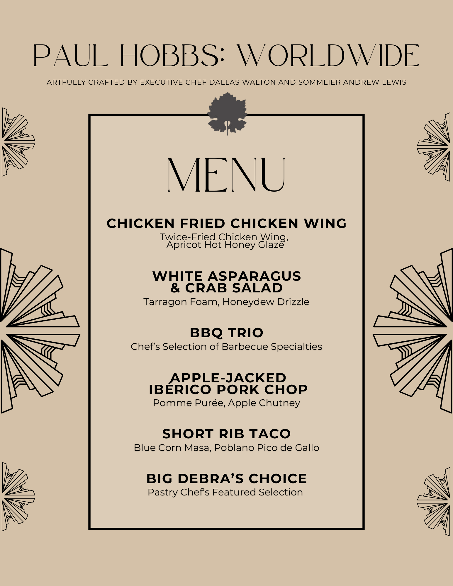 • A thoughtfully crafted pairing menu designed by Executive Chef Dallas Walton
